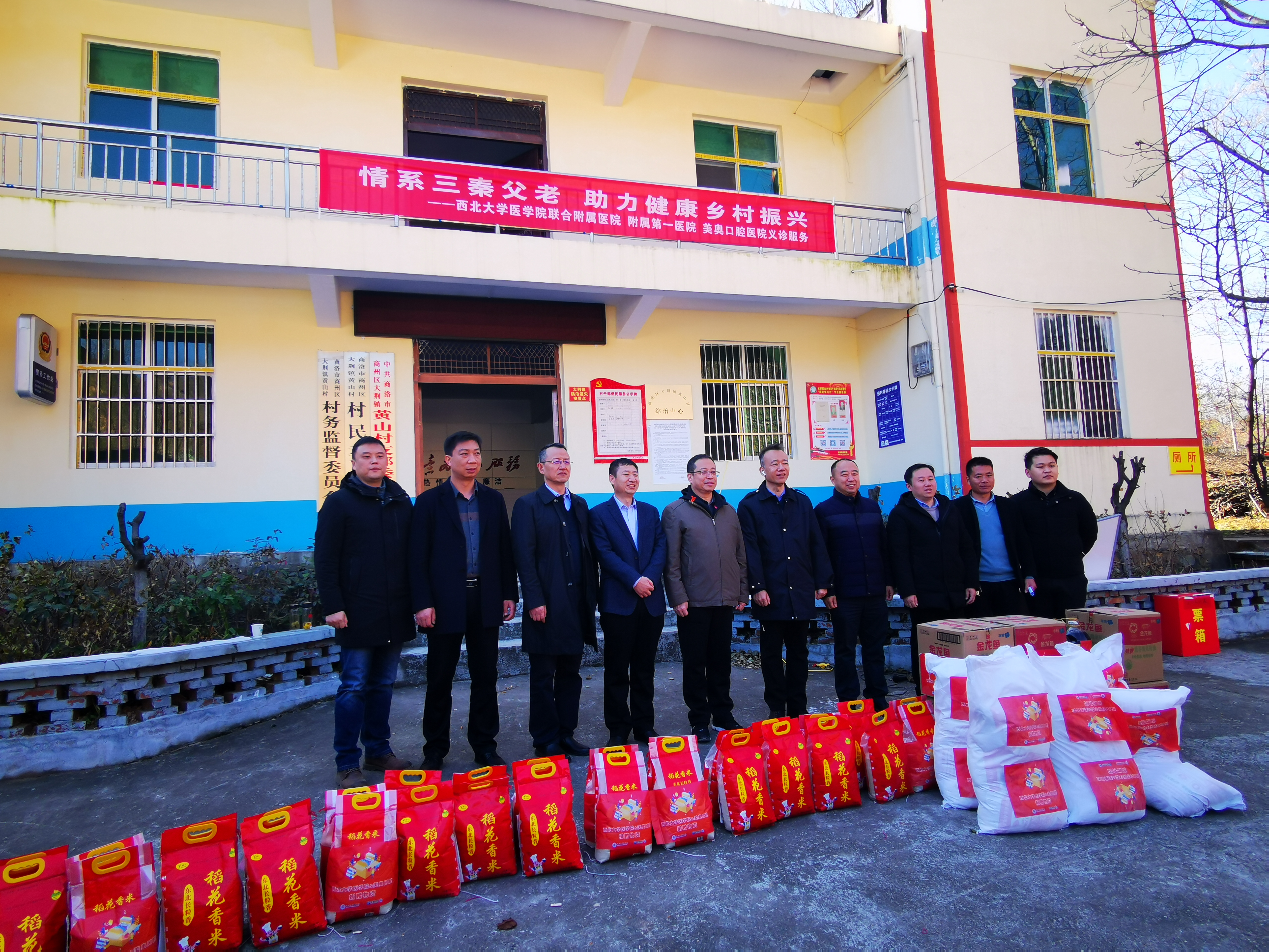 为扎实推进基层卫生健康建设,持续将优质医疗服务深度、有效下沉,全面助力乡村振兴战略,在校扶贫工作领导小组的部署安排和各附属医院的支持下,11月10日,开云kaiyun官方网站直属党支部联合附属第一医院、附属医院、西安美奥口腔医院相关专家,赴我校驻村帮扶点商洛市商州区黄山村开展义诊服务活动。开云kaiyun官方网站院长赵钢、附属第一医院党委书记杨军乐、附属医院党委书记石胜彬、西安美奥口腔副院长孙小龙带队参加了此次义诊活动。