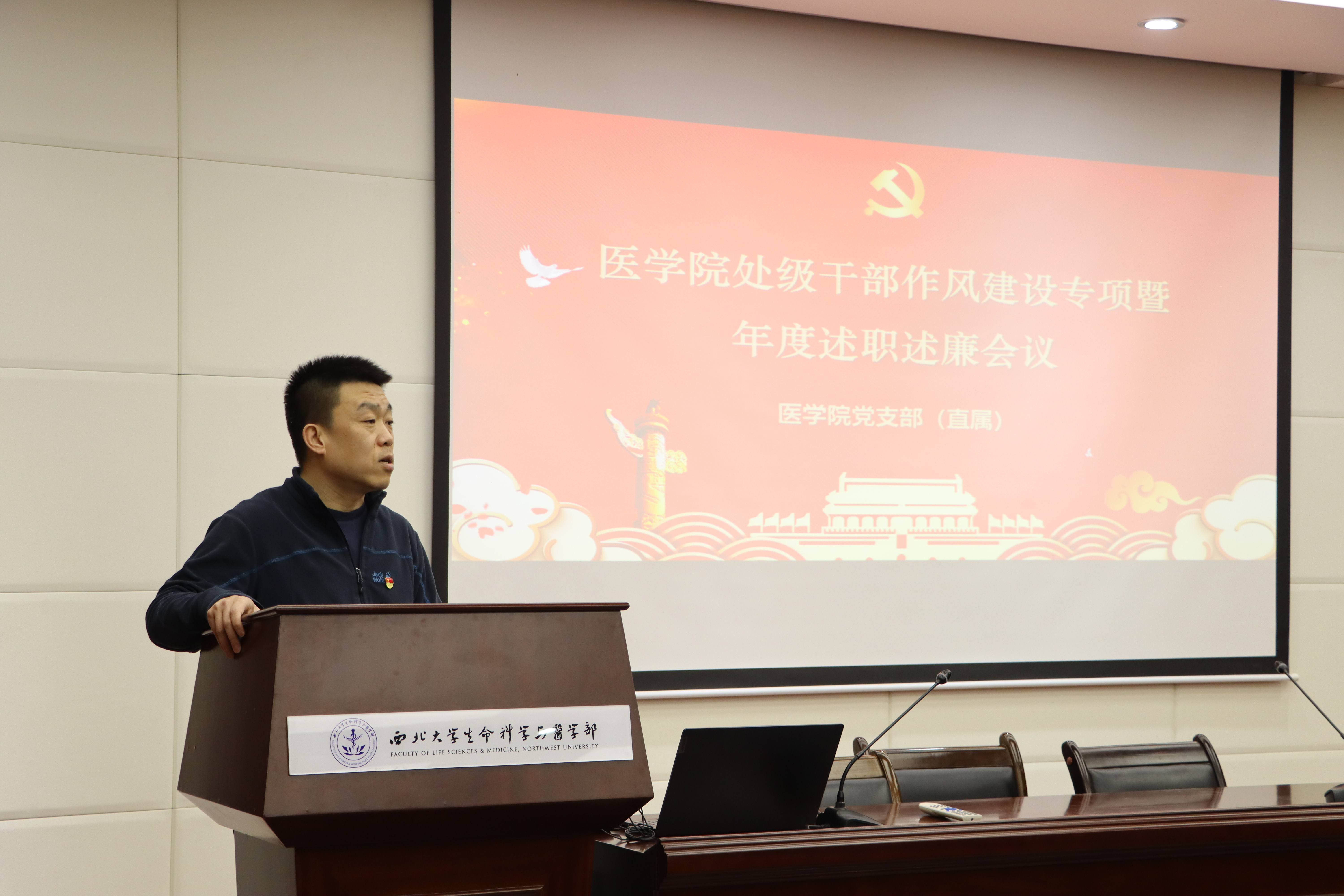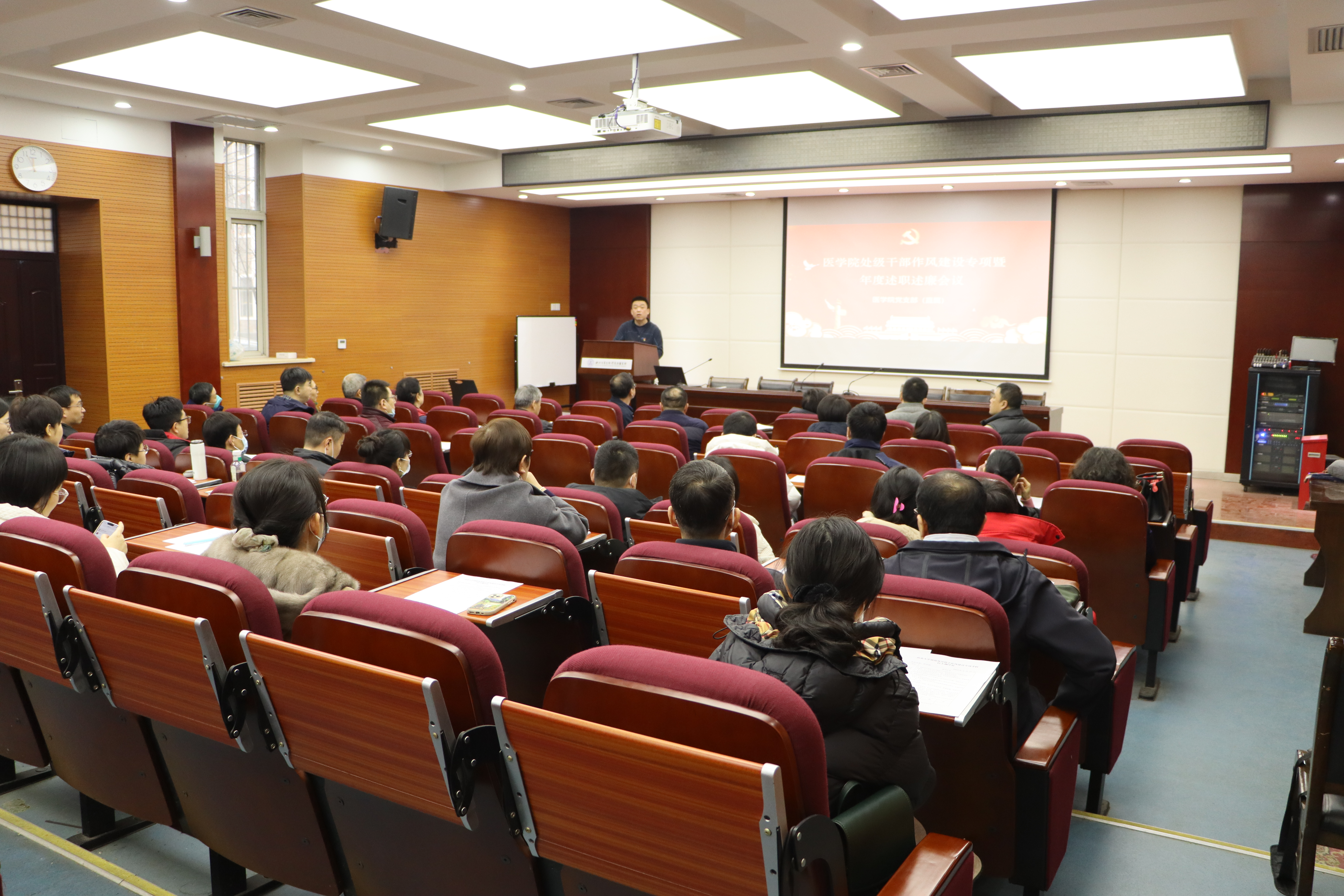 会上,赵钢院长代表学院班子述职述廉,围绕思想建设和廉洁建设情况、重点工作开展情况等方面全面阐述2022年度学院班子履职履责情况,深刻剖析存在的问题,明确开云kaiyun官方网站建设和班子建设的努力方向。张宇书记代表学院班子汇报作风建设情况,重点围绕作风建设专项行动实施方案“五个聚焦”要求,从坚持政治建设、能力建设、作风建设情况全面阐述班子运转和班子成员“勤快严实精细廉”作风落实情况,以及以作风建设推动医学教育发展各项事业开展情况,与会教职工进行了现场民主测评。