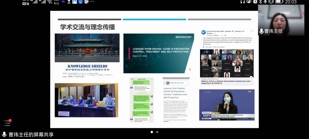 这次曹玮医生的分享让我对于克服疫情更有信心。疫情当前,“无穷的远方,无数的人们,都和我有关”,每个人都应该在自己的能力范围内做点事。面对疫情的突然来袭,我们慌张过,无措过,但更多是共克时艰的勇气,是战胜疫情的决心和希望。寒冽的冬天终将会过去,温媛的春日也终将会如期而至。从曹玮医生的讲述中我们能够发现,人类文明坎坎坷坷,以不折不挠搏同舟共济,相信在我党的领导下,我们终会克服新冠疫情。