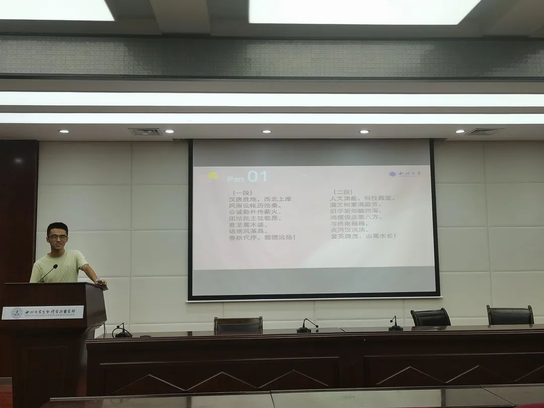 2021级入党积极分子代表董超众首先分享了他大一学习经历中所遇到的困难以及面对挫折时的应对方法,以及专业课程上的学习经验,鼓励学弟学妹抓紧时间,不负韶华,把握当下,及时调整自己的学习状态,为后续的学习打下坚实的基础。