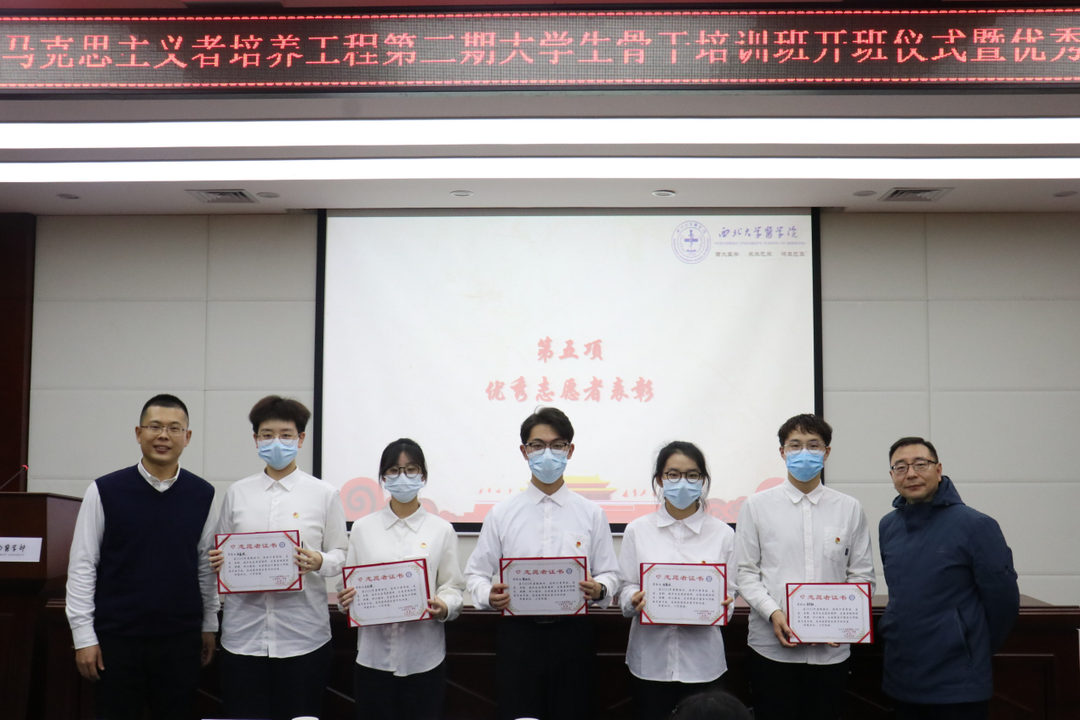 校团委副书记齐钊和学院党支部(直属)副书记杨涛为优秀志愿者颁发证书。