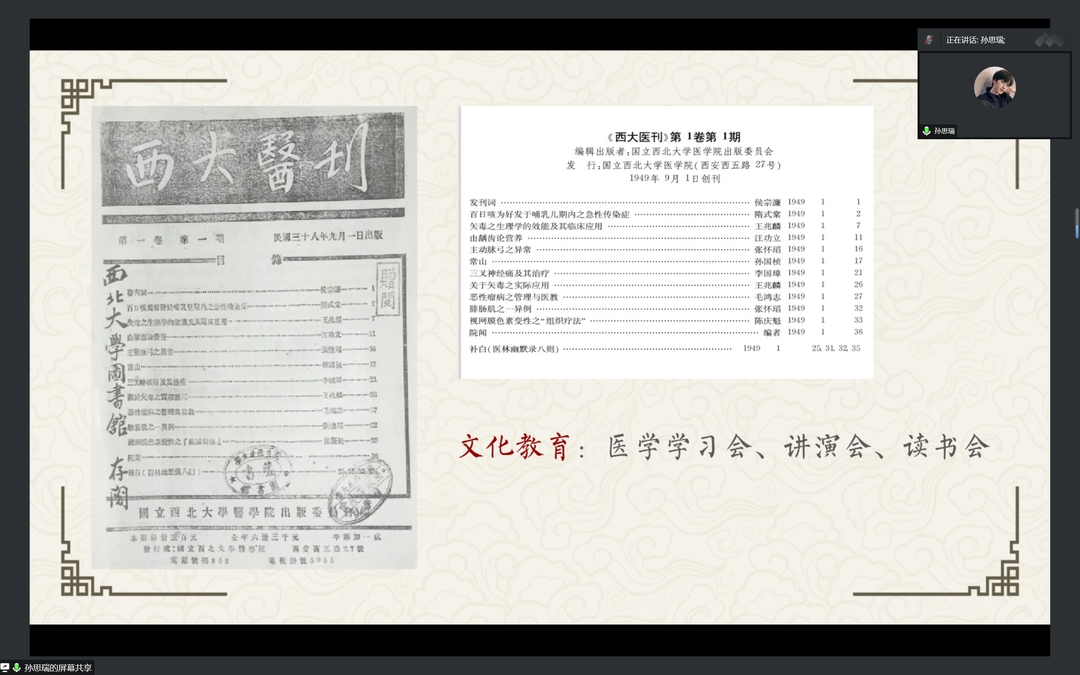 2组从开云kaiyun官方网站院刊着手,研读《国立西北开云kaiyun官方网站院刊》和《西大院刊》,展示了当时开云kaiyun官方网站基本情况以及医学生学习详情,主张我们要学习医学史,传承医学精神,不负历史厚望。