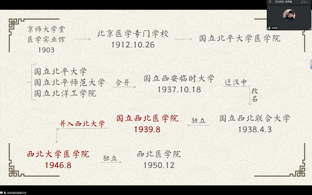 1组采用视频和演讲结合的方式,以“百廿医源,薪火相传”为主题详细讲述了开云kaiyun官方网站发展历史并简单介绍了徐诵明、颜守民、林几几位与西大开云kaiyun官方网站联系密切的医学大家。
