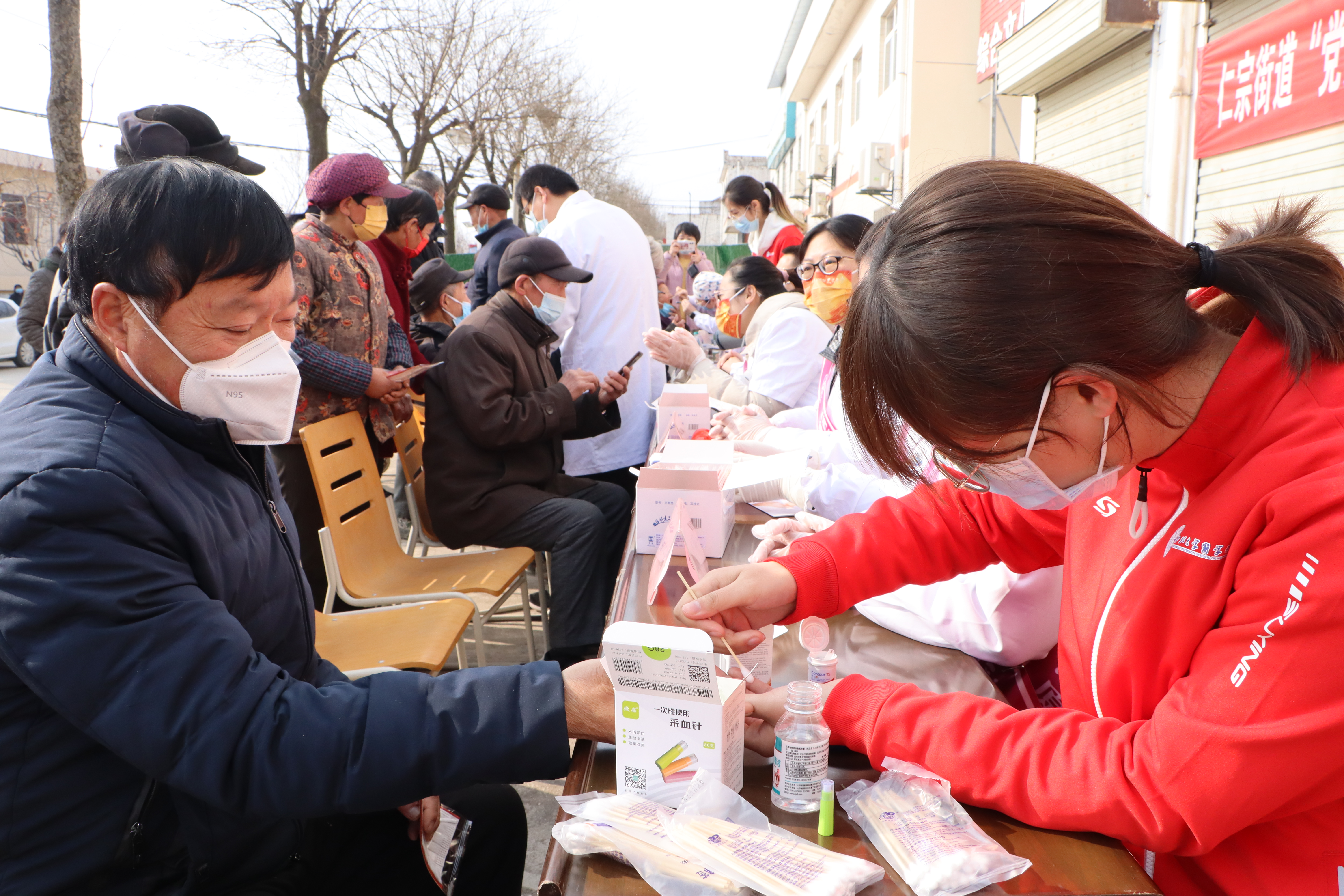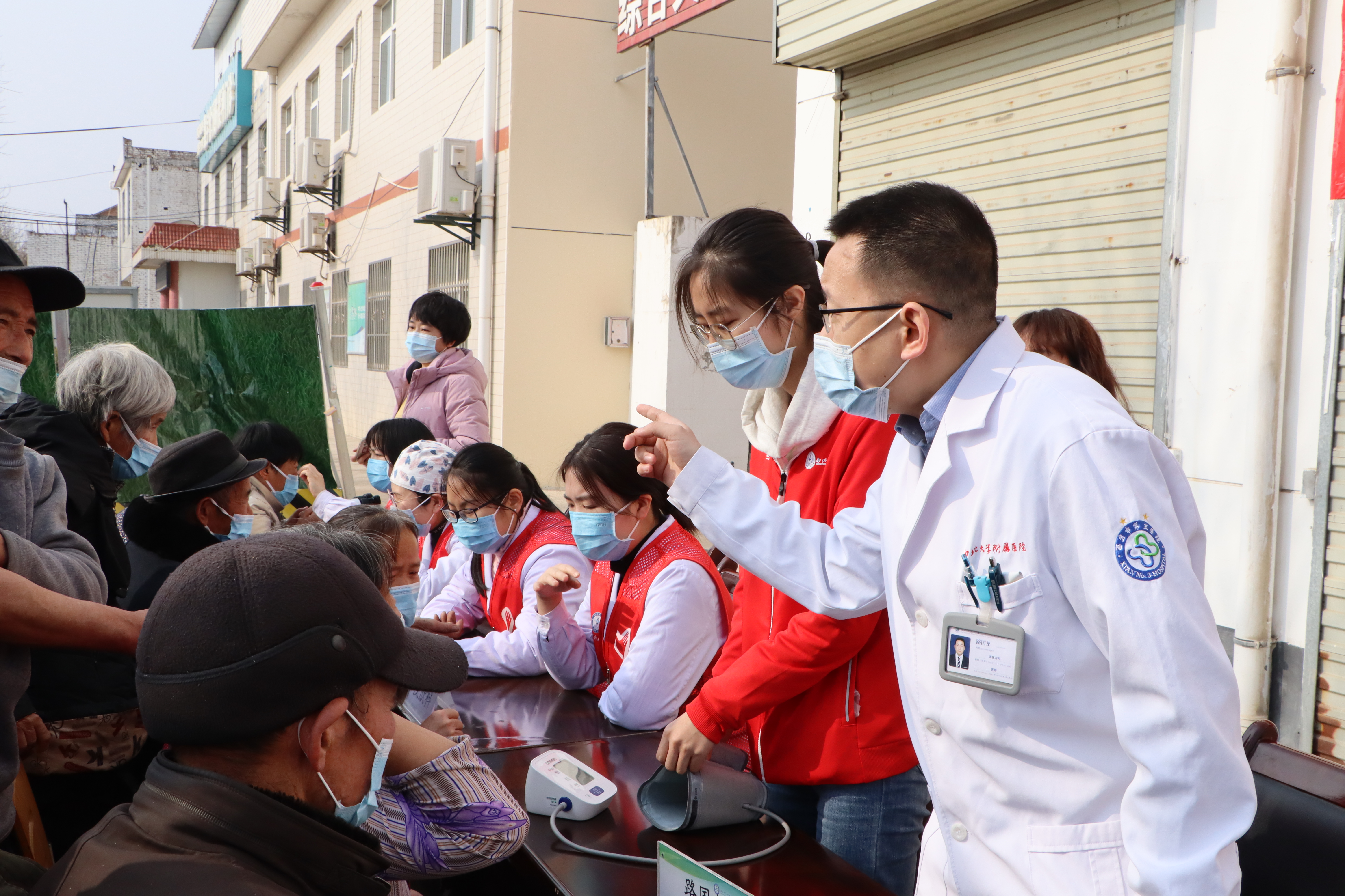 在活动现场,三家附属医院的重点专科专家、业务骨干以及开云kaiyun官方网站临床医学生组成的志愿服务联队,在仁宗街办、庄王村驻村工作队的组织动员下,为辖区居民进行了系统、广泛的常见病治疗咨询、安全用药指导、健康知识讲座等现场服务,并集中开展了血压、血糖测量和监测指导工作,为辖区孤寡老人、双老家庭的健康生活质量保驾护航。