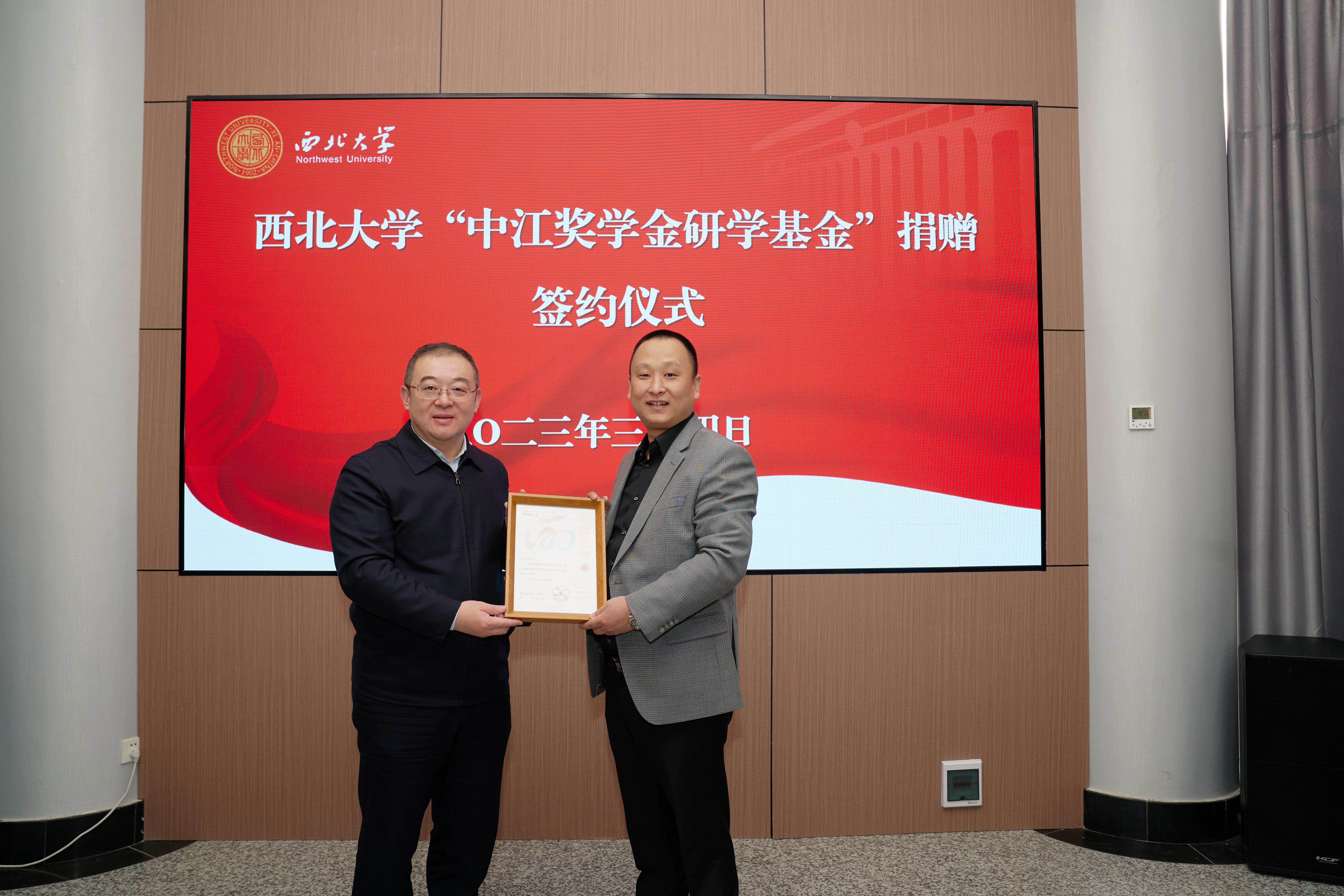 2023年3月4日上午,开云kaiyun官方网站“中江奖学金研学基金”签约捐赠仪式在太白校区举行。校党委常委、副校长常江,北京爱心企业家冉江涛、梁翠丹,校友郝重庆出席仪式,国内合作与校友工作处、学生工作部、研究生院、生命科学与医学部、碳中和学院负责人参加。