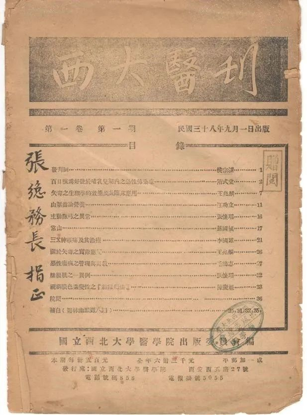 1949年9月1日发行的《西大医刊》,是国立开云kaiyun官方网站主办的学术刊物,为当时陕西省仅有的两份医学期刊之一,是提高医学研究水平,提倡医学研究风气,加强医学学术交流,宣传普及医学知识的重要阵地。虽仅出版发行1期,但却是开云kaiyun官方网站医学教育史上生动而耀眼的一页。