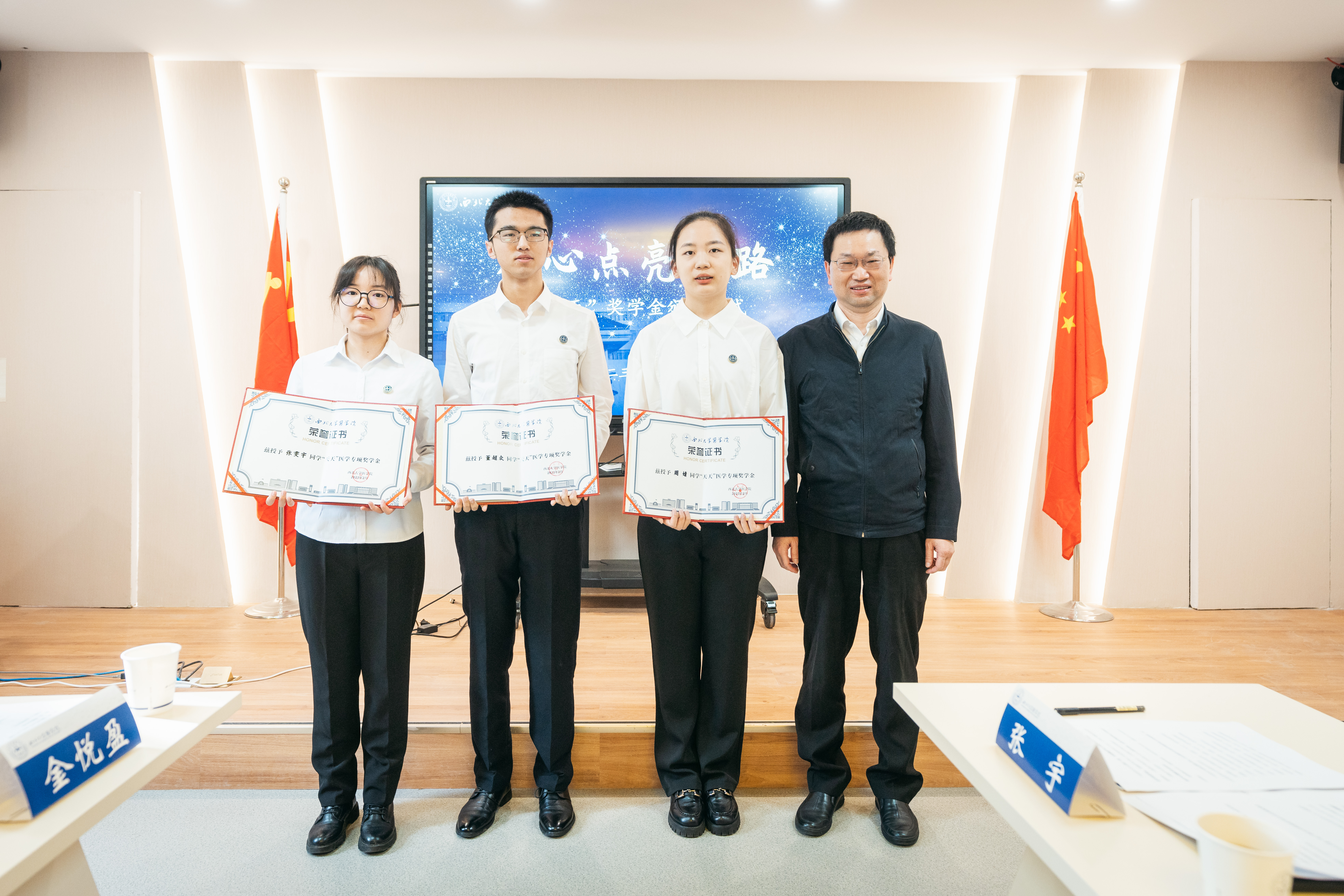 姚建红为“天天”医学专项奖学金获得者颁奖,获奖学生代表向姚建红书记赠送手工织品表示感谢。“天天”医学奖学金是由姚建红、常江等个人出资,于2019年设立的专项奖学金,奖励每学年医学专业表现突出优秀学生每人3000元人民币。
