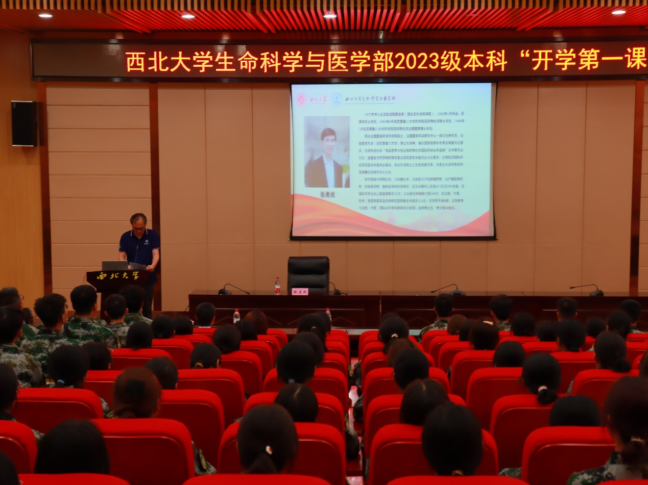 9月4日下午,张勇民院士为学部2023级本科新生做了题为《跟上时代步伐,实现人生跨越》的“开学第一课”。本次讲座在太白校区图书馆报告厅举办,由生命科学学院院长付爱根主持,党委副书记魏宁、辅导员任洁及学部2023级全体本科新生共同参加。