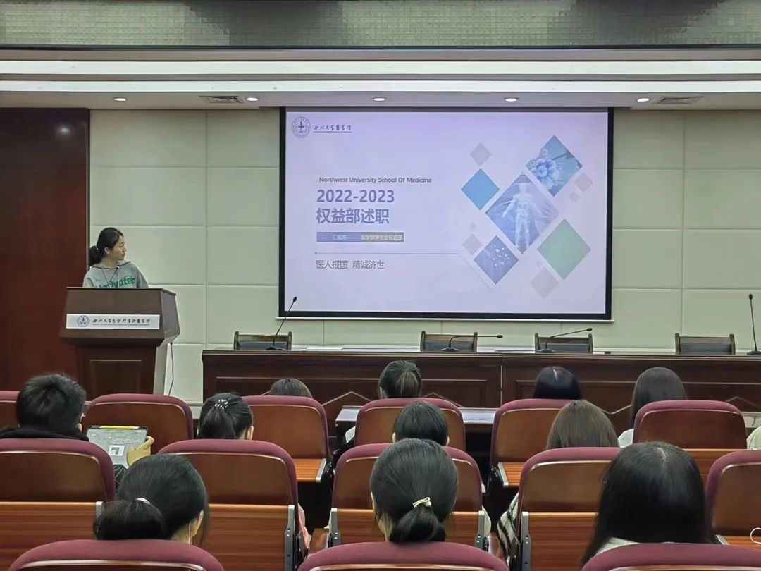 权益部工作人员王薛杨分别从第一学期、第二学期介绍总结了权益部的工作,并表示接下来会从部门建设、日常活动、具体活动、总结存档四个角度继续,同各志愿者继续努力。
