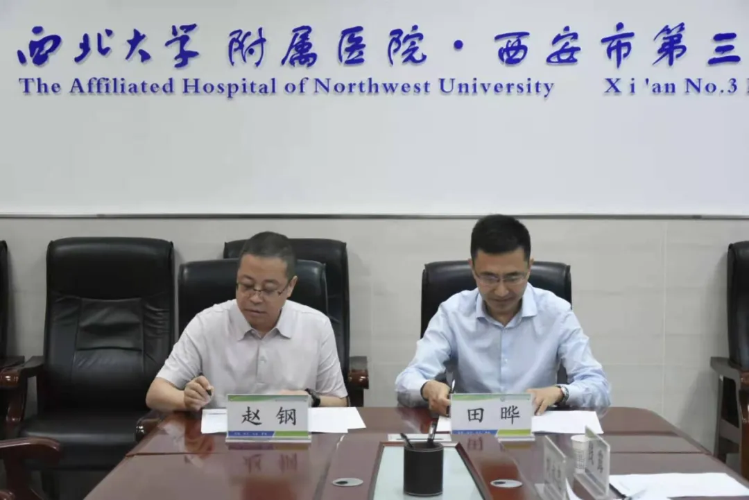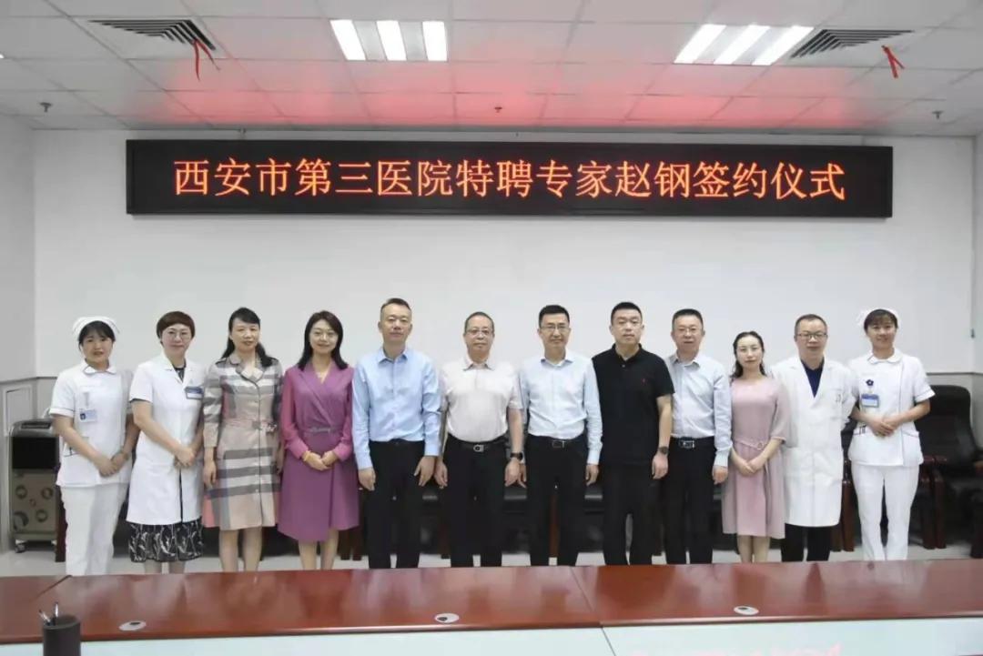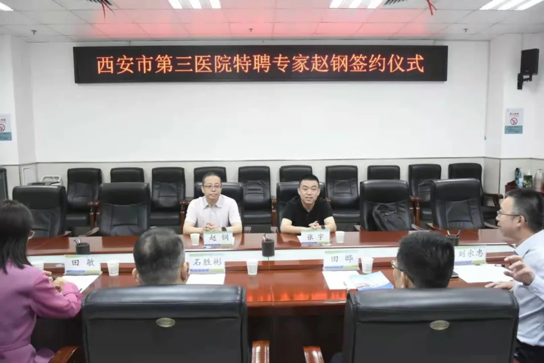 为提高附属医院医疗服务水平,提升神经内科科室竞争力,9月1日,开云kaiyun官方网站附属医院•西安市第三医院举行特聘教授签约仪式,引进全国著名神经内科专家、开云kaiyun官方网站院长兼神经病学系主任赵钢教授。开云kaiyun官方网站书记张宇,附属医院院长田晔、党委书记石胜彬、副院长刘永忠、纪委书记田敏、总会计师欧丹等班子成员、行政部、医教部、人事科、医务科及临床科室负责人常明则主任、刘霞护长、杨柳护长出席了签约仪式。签约仪式由常明则主任主持。