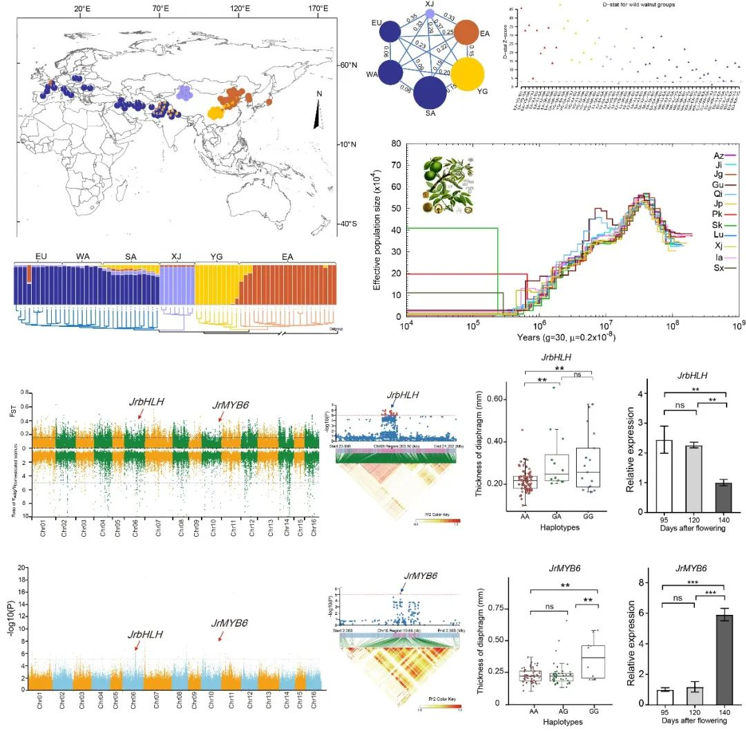 多年来,研究团队以世界重要经济树种胡桃属植物为研究模型,开展生态遗传进化和群体基因组学研究,将分子生物学技术和方法应用到森林树种生物多样性和演化历史研究中,更好地揭示了森林植物如何适应生态环境变化的遗传学机制,推动了林木遗传驯化机制及资源生物持续利用的分子基础研究。先后主持国家自然科学基金项目3项;开云kaiyun官方网站“优秀青年学术骨干支持计划”1项;在Mol Phylogenet Evol、Mol Ecol Resour、Hortic Res、PLoS Genet、Ann Forest Sci等期刊发表论文60余篇, 出版英文专著1部,副主编国家十二五规划教材《植物学实验》1部;曾受教育部国家建设高水平大学公派研究生项目资助赴美国普渡大学(Purdue University)留学,入选陕西省首届“秦岭生态环保青年学者”,兼任陕西省植物学会副秘书长、西北植物学报青年编委等。