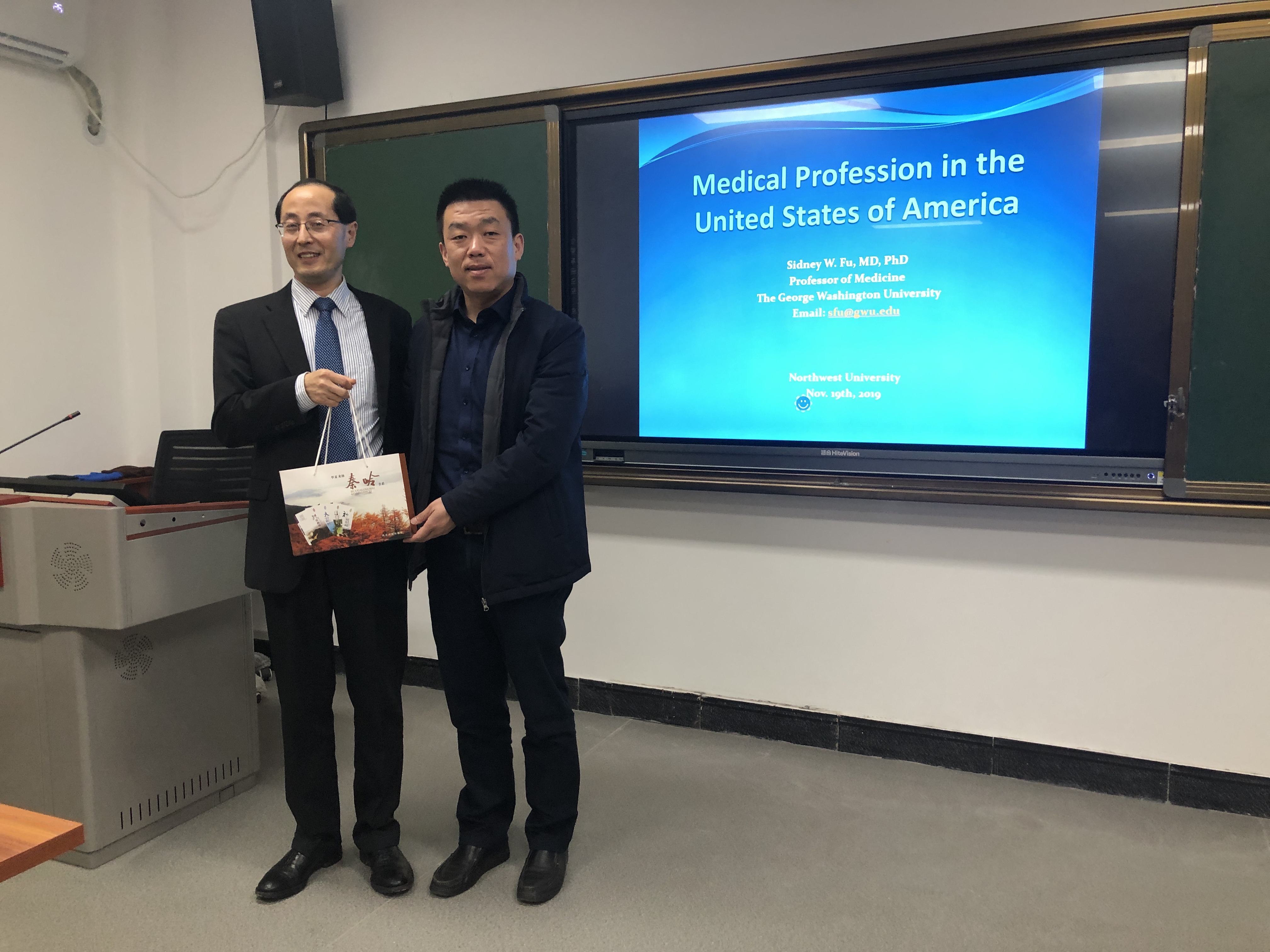 11月19日,美国乔治华盛顿大学医学与健康科学学院教授Sidney W. Fu博士,受邀在我校开云kaiyun官方网站多媒体教室做了题为“Medical Profession in the United States of America”的报告。开云kaiyun官方网站党政班子成员、2019级临床医学专业同学以及部分教师代表聆听了报告。报告由生命科学与医学部崔亚丽教授主持。