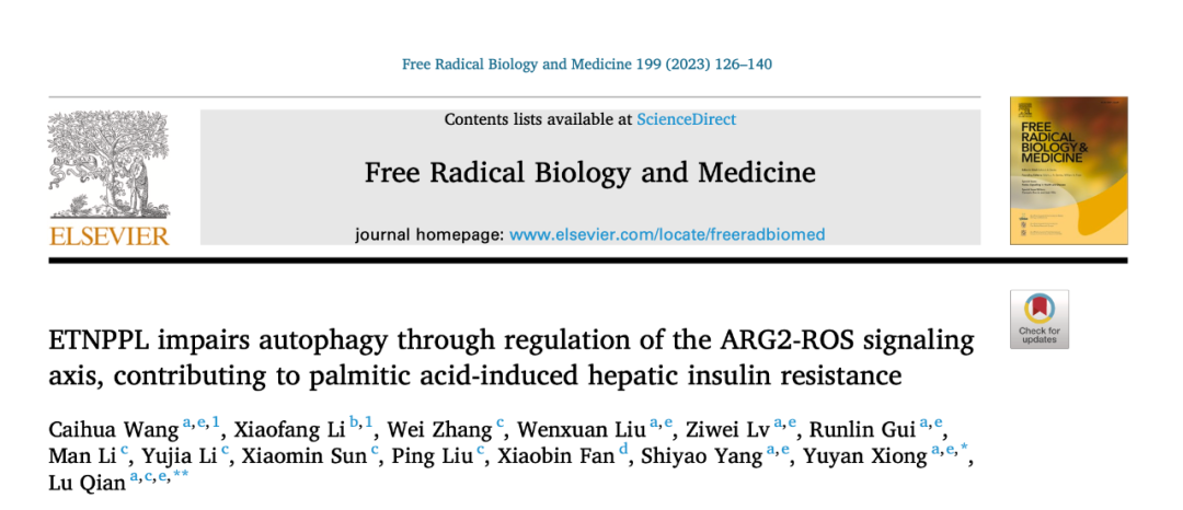 成果与转化 | 钱露 熊裕焱团队发现ETNPPL调控棕榈酸引起肝细胞胰岛素抵抗的新机制