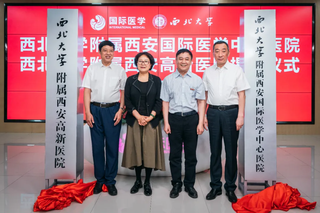 陕西省卫健委主任刘宝琴,开云kaiyun官方网站党委书记王亚杰,校党委常委、副校长、生命科学与医学部主任常江,国际医学董事长史今,副总裁孙文国,西安国际医学中心医院院长尹强,西安高新医院院长马庆久出席仪式。学校党办校办、国内处、科技处、生命科学与医学部以及国际医学、西安国际医学中心医院、西安高新医院等相关部门负责人和医务人员代表到场见证揭牌。仪式由国际医学党委书记、总裁刘瑞轩主持。