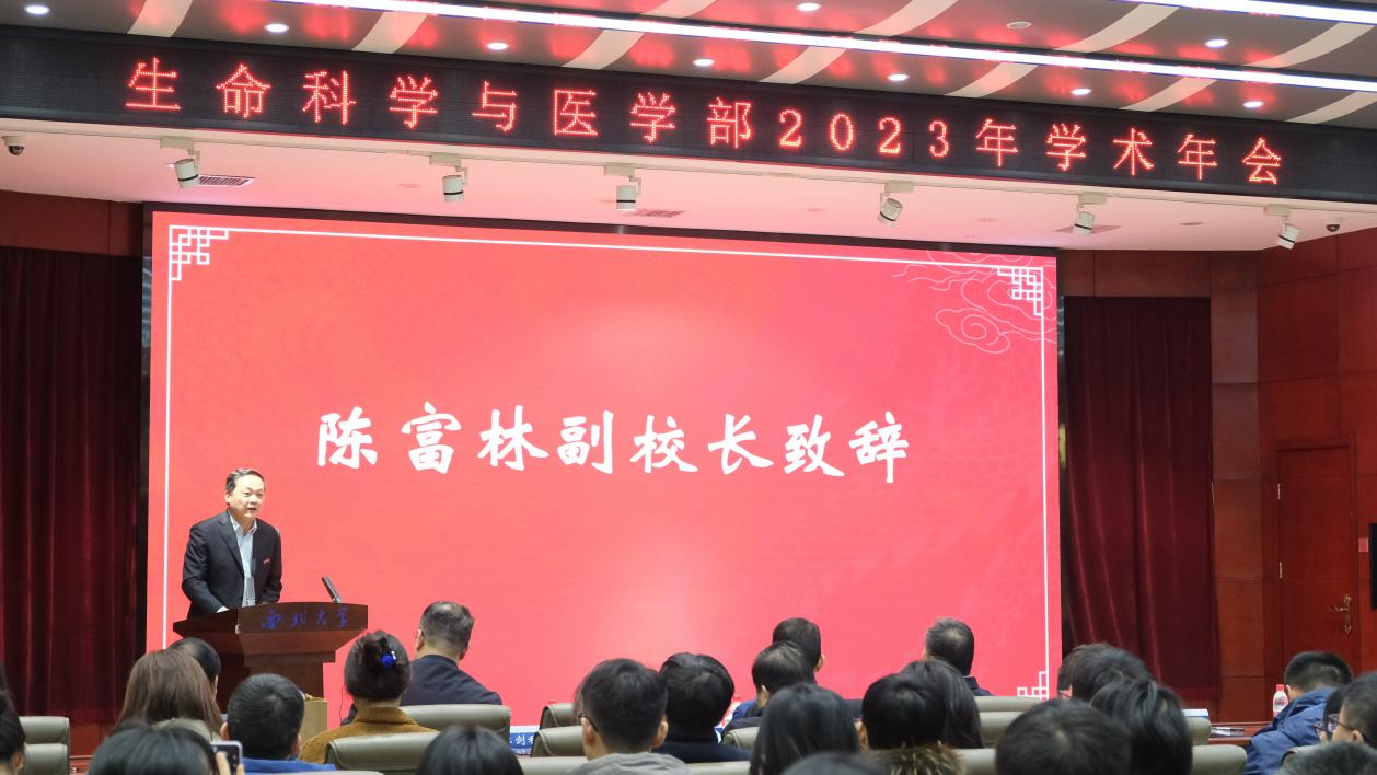 1月15日,生命科学与医学部2023年度总结表彰暨2024年学术年会在太白校区萃园多功能报告厅举办。校党委常委、副校长,生命科学与医学部主任陈富林出席并致辞,教务处、科技处、研究生院、实验室处负责人与学部班子成员,以及学部教职工代表、附属医院教职工代表、学生代表等200余人参加了会议。会议特邀西北农林科技大学谢寿安教授,我校地质系张志飞教授,化材学院樊海明教授作了报告。