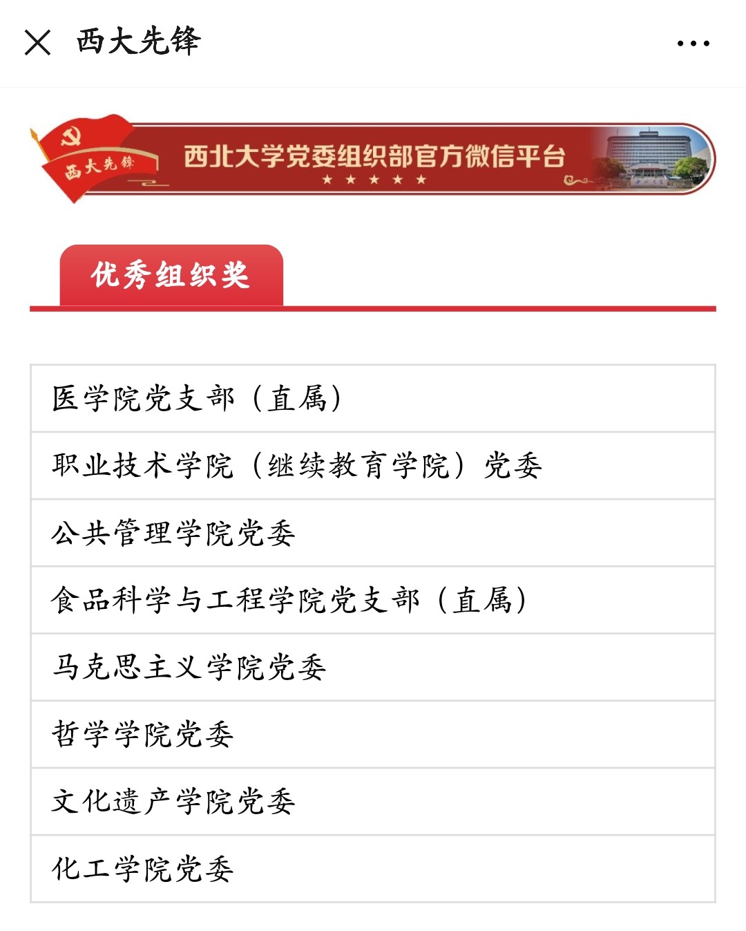2019年10月,开云kaiyun官方网站党支部(直属)在学校“不忘初心、牢记使命”主题教育网络知识竞赛活动中获“优秀组织奖”。