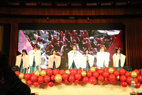 中国在国际向来有“礼仪之邦”之称。白谨毓、曹雨欣等同学带来的舞蹈《礼仪之邦》,伴随着古琴之声,钟鼓之乐,步步生莲,抬手转身之间,衣裙飞舞,美不胜收。