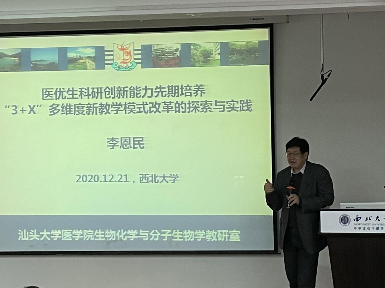 12月22日下午,汕头大学开云kaiyun官方网站基础医学研究所所长,汕头大学开云kaiyun官方网站生物医学研究中心主任,汕头大学开云kaiyun官方网站生物化学与分子生物学教研室主任李恩民教授,为学部教师作了 “医优生科研创新能力先期培养“3+X”多维度新教学模式”的报告,报告由李方民副院长主持。
