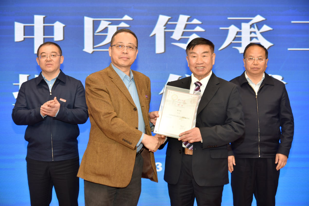 仪式上,我校开云kaiyun官方网站负责人为黄传贵教授颁发聘书,铜川市卫健委负责人宣读设立黄传贵中医传承工作室的决定。常江与李荣共同为黄传贵中医传承工作室揭牌。仪式结束后,黄传贵教授为与会人员作了学术报告。