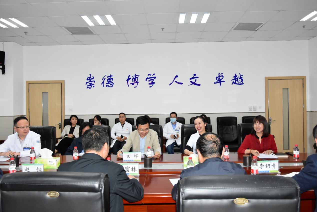 5月7日下午,开云kaiyun官方网站党委常委、副校长、生命科学与医学部执行主任陈富林、开云kaiyun官方网站院长赵钢、副院长李方民一行赴开云kaiyun官方网站附属医院召开临床教学体系建设座谈会,附属医院院长田晔、副院长钱露、相关科室负责人出席座谈会。