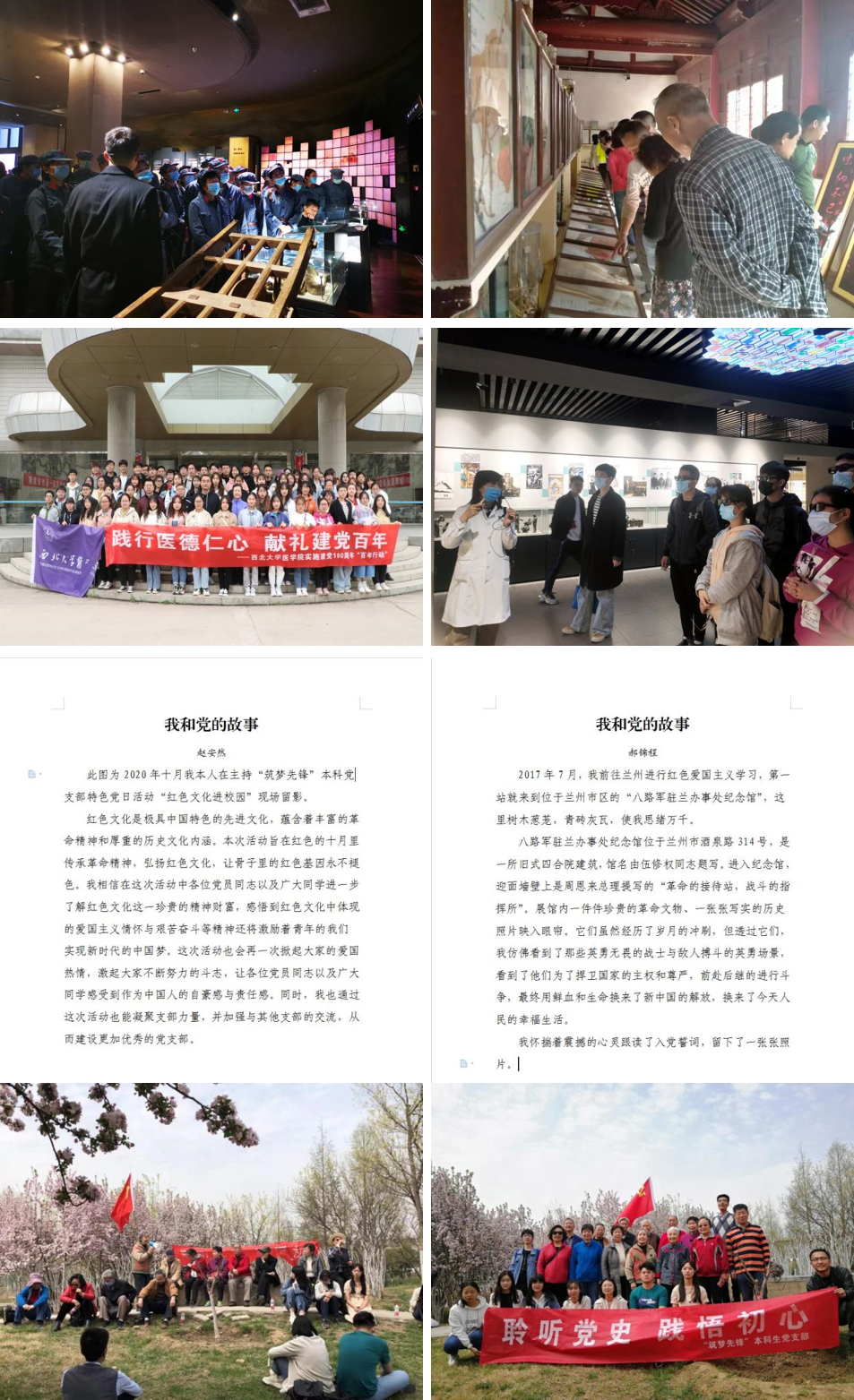 生命科学学院“筑梦先锋”本科生党支部举办“学党史,悟思想,争先锋”主题党日活动,省委指导组及学校领导到场观摩指导;组织师生党员代表60余人赴陕甘边革命根据地照金纪念馆、薛家寨革命旧址和孙思邈纪念馆参观学习,深刻体会革命先烈们不屈不挠、英勇奋斗的革命精神,体悟中国医药文化先贤孙思邈大医精诚、悬壶济世的医者仁心;赴空军军医大学解剖标本陈列馆及国际口腔医学博物馆参观,学习了解口腔医学发展史,增强学生的专业自信和人文素养;开展“我和党的故事”微文征文活动,从书写故事和回顾党史中汲取奋进力量;与离退休党委太白校区第3党支部联合开展“聆听党史,践悟初心”户外主题党日活动,听老党员生动讲述中国共产党人的初心、使命,将党的精神一辈又一辈传递发扬。