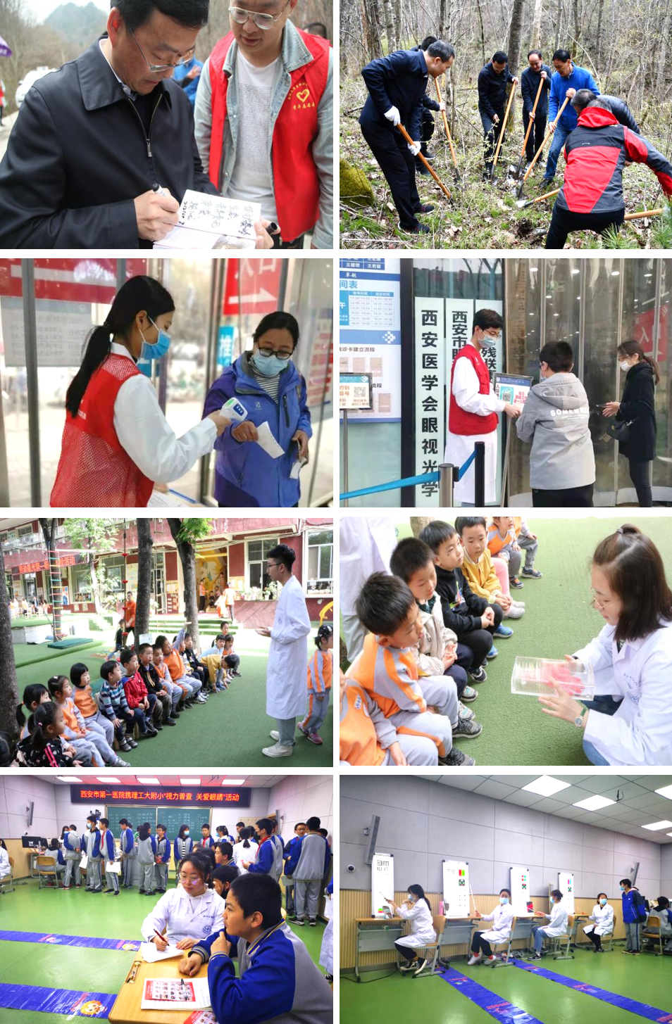 邀请团省委书记段小龙赴佛坪县秦岭观音山国家自然保护区参加“植百棵树守护秦岭,青年向上迎建党百年”主题团日活动,引领师生党员积极传播绿色理念、倡导生态保护,建设美丽秦岭;与开云kaiyun官方网站附属第一医院·西安市第一医院联合开展志愿导诊活动,组织学生志愿者利用课余时间,在附属第一医院门诊部为就诊患者提供便捷服务,体味医者仁心;与开云kaiyun官方网站附属幼儿园携手开展生命科学与医学小课堂活动;赴西安理工大学附属小学开展“视力普查关爱眼睛”眼科义诊活动,为全校2700多名学生进行视力筛查。