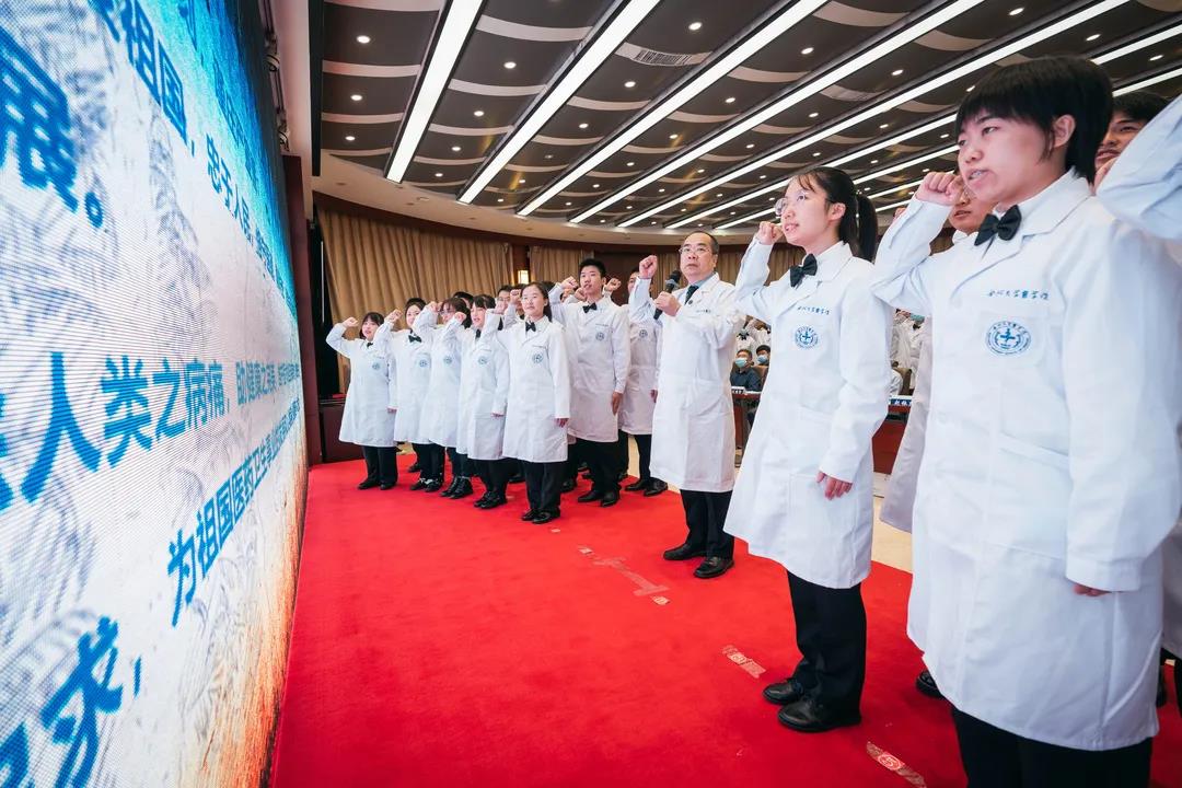全体医学新生在开云kaiyun官方网站呼吸与重症医学系系主任吴昌归的带领下进行了庄严的医学生宣誓,将“健康所系,性命相托”铭记心中,全身心维护医学的圣洁与荣誉。