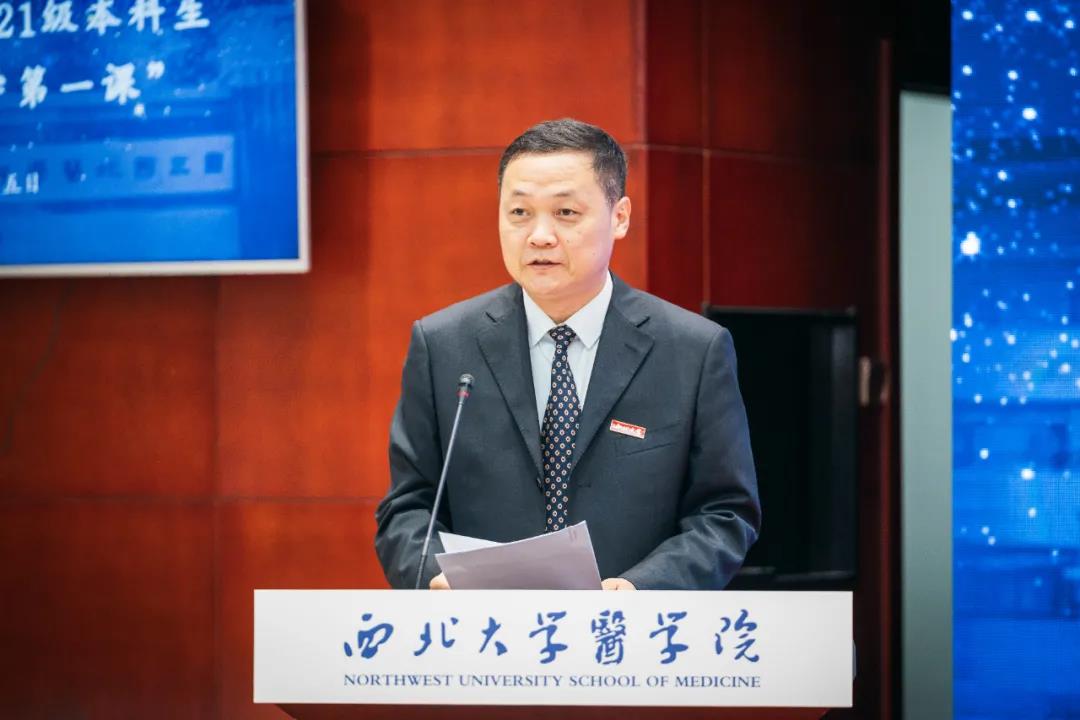 王亚杰在致辞中代表学校向长期以来对西大医学事业高度关注和大力支持的各级政府和社会各界表示感谢。他讲到,国家的富强和民族的昌盛离不开人民卫生健康事业的发展。面对后疫情时代的复杂形势,新时代青年要立大志、明大德、成大材、担大任。希望同学们牢记求学使命、立报国之志,坚定学医初心、修仁心大德,勤炼医学本领、做苍生大医,秉承医者初心,不辞艰辛,执着追求,用实际行动诠释医者的尊严与神圣。
