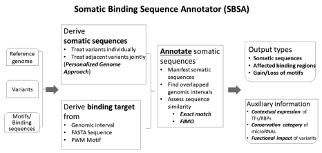 该方法建立分子调节剂结合序列变化的有效注释可揭示发病发生与发展的新机制,为进一步干预疾病提供参考策略。研究用注释改变的绑定序列,首先证明了不同类型的基因变体和分子调节器的变化,揭示了microRNA和miRNA-mRNA 3'-UTR结合。进一步通过受试者的多组学数据验证建立细胞结合序列注释方法,确定的许多体细胞结合序列对生物功能的改变有着重要的影响,特别是TERT启动子区域突变对细胞生物学功能的影响及导致E26转化专属因子获得的结合序列的影响。