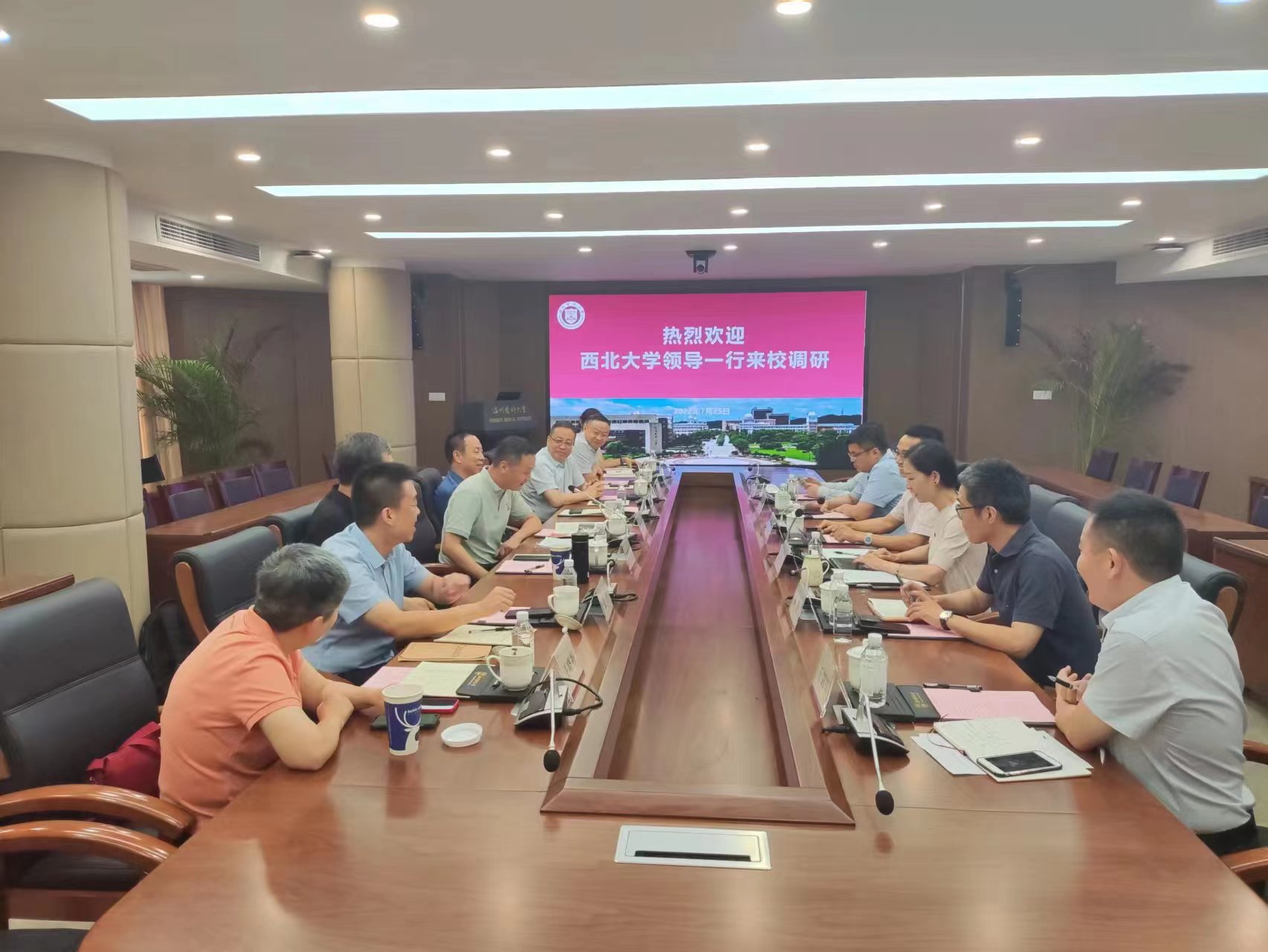 7月26日,校党委常委、副校长,生命科学与医学部主任陈富林带队赴温州医科大学参观访问。温州医科大学校长李校堃院士,校党委委员、副校长曹建明,温州医科大学相关单位负责人参加座谈。我校开云kaiyun官方网站、附属第一医院和西安市第九医院等单位负责人陪同访问。
