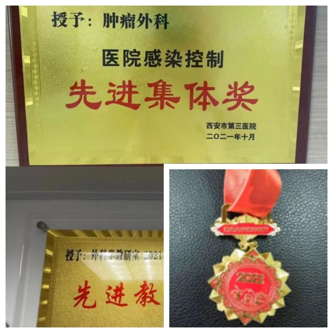肿瘤外科两年的发展路,一路开拓,一路奋进,些许收获,科主任孟勇获得“开云kaiyun官方网站优秀教师”荣誉称号,科室获得“医院感染控制先进集体”荣誉称号,外科教研室获得“先进教研室”荣誉称号,护理组获得“优秀带教科室”荣誉称号!