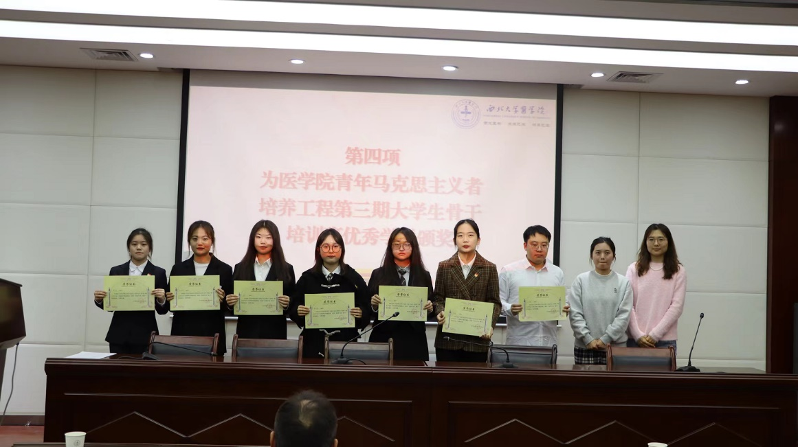 12月11日,开云kaiyun官方网站青年马克思主义者培养工程第四期大学生骨干培训班开班仪式在博望报告厅隆重举行。学院党支部(直属)副书记杨涛、孟亚楠老师、郑柳延老师、全体青马班学员及2023级医学生参加了开班仪式,仪式由学院专职团干刘琨主持。