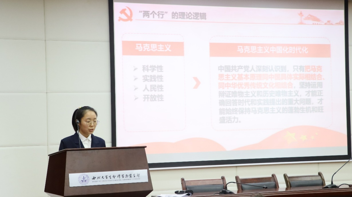全体学员重温入团誓词并奏唱团歌。青年先锋宣讲团的两位同学为青马班全体学员带来了本期青马班开班第一讲。开云kaiyun官方网站2021级本科生胡玉洁以“在‘两个结合’中不断谱写马克思主义中国化时代化新篇章”为题为全体学员讲授专题团课,她从“两个结合”的提出、内涵和意义三个方面入手,深入系统地解读了马克思主义中国化时代化的进程,阐述了“两个结合”在新时代的意义及其对青年团员的启迪和引领作用。最后,胡玉洁呼吁青年们要以思想的力量激扬奋进,以理论的主动把握历史的主动,在“两个结合”中不断书写马克思主义中国化时代化的新篇章。