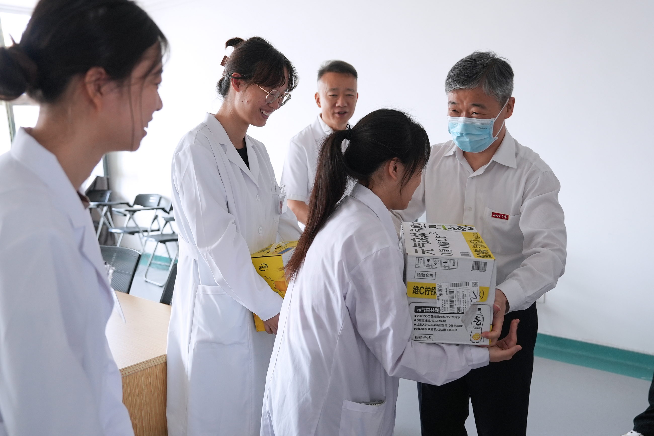 慰问期间,蒋林、孙庆伟还看望了在各医院临床实习的医学生,嘱咐同学们要牢记“医人报国”崇高使命,充分发挥西大医学“小规模、高起点、有特色”的培养优势,踏实认真学习医学知识,刻苦努力钻研临床技能,做合格的西大医学人。